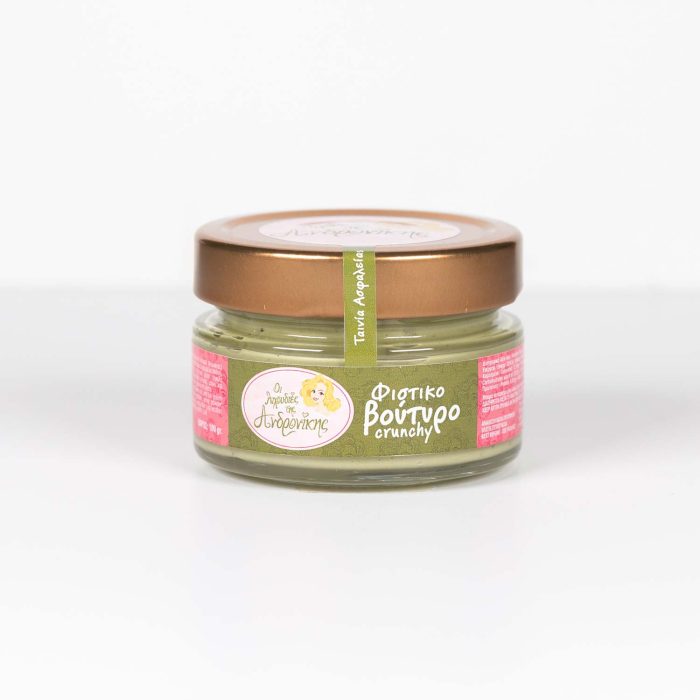 Το Φιστικοβούτυρο Crunchy είναι η απόλυτη εμπειρία για τους λάτρεις των τραγανών υφών και των πλούσιων γεύσεων. Φτιαγμένο με αγνά φιστίκια Αίγινας, το οποίο διατηρεί τη φυσική γεύση και τα θρεπτικά συστατικά τους, το φιστικοβούτυρο μας συνδυάζει την πλούσια κρεμώδη βάση με τραγανά κομμάτια φιστικιού, που απογειώνουν την γευστική εμπειρία σε κάθε κουταλιά.