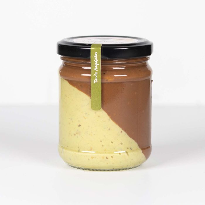Η γεύση της είναι γεμάτη και ισχυρή, με τη σοκολάτα να ενσωματώνεται αρμονικά με το φιστίκι, προσφέροντας μία μοναδική αίσθηση πολυτέλειας σε κάθε μπουκιά. Η κρεμώδης υφή της είναι ιδανική για να χρησιμοποιηθεί ως επάλειψη, γαρνιτούρα ή για να προσθέσετε μια γευστική πινελιά σε κάθε γλυκό και επιδόρπιο.